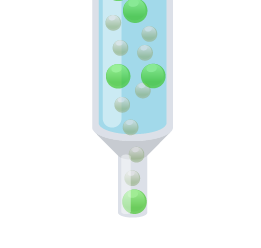 一般的な手法のとおり、セルソーターにより選別を行いますが、PuRECの選別システムでは、1秒間に約3万個の細胞を検査します。骨髄から採取された候補の細胞が、この装置を通過する際に、一つひとつの細胞の特性が瞬時に測定されます。